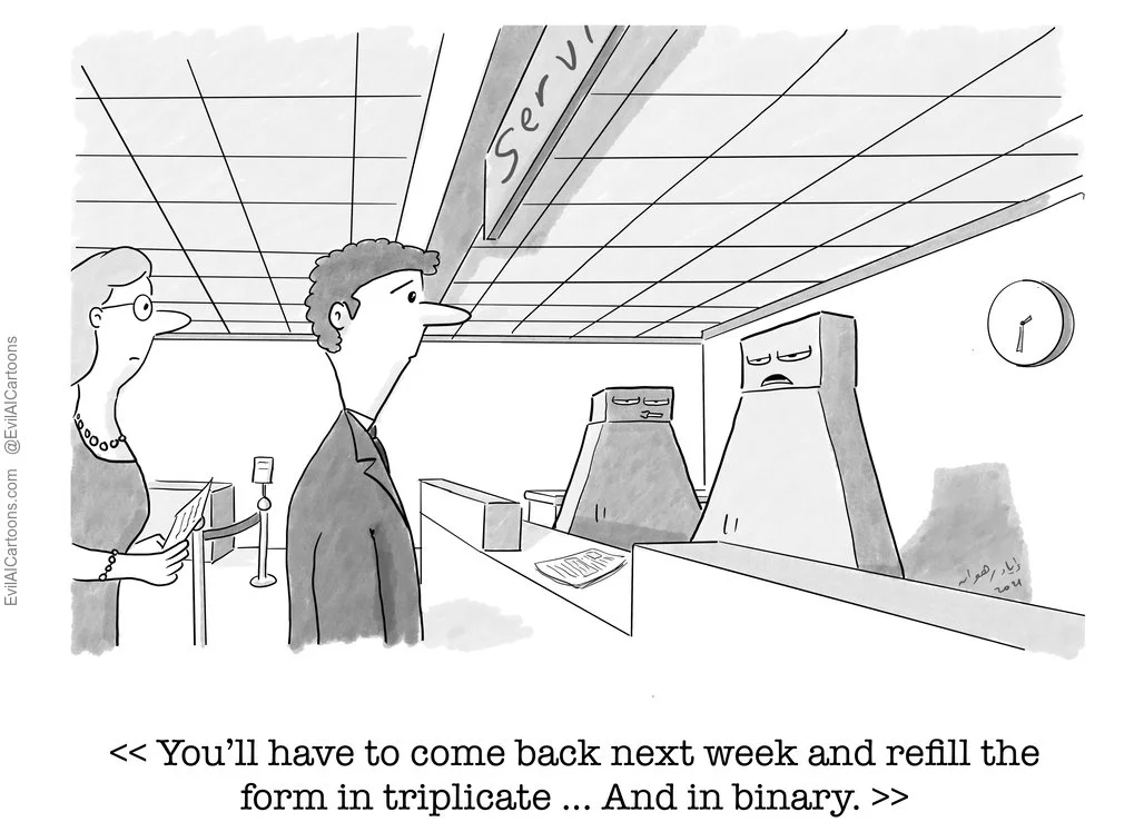 In Little Britain, a British sketch comedy series that aired between the years 2003 and 2007, there is a character named Carol Beer played by actor David Walliams. Carol is typically a customer service clerk or a bureaucrat who sits behind a computer, typing away for an inexplicably long time, before condescendingly telling the client: “Computer says no!” There is pretty much nothing the client can do at this point to understand or to contest the decision. They can ask to speak to the manager of course, to which Carol will once more say “Computer says no!”